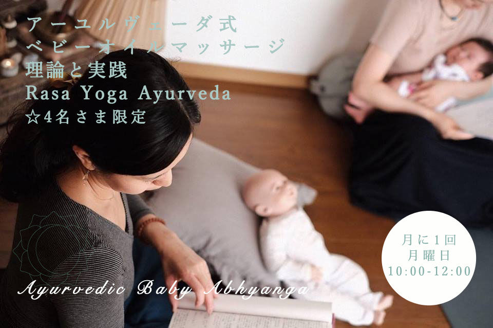 -アーユルヴェーダ式オイルベビーマッサージ 理論と実践- 講師: インド政府認定アーユルヴェーダパンチャカルマセラピスト 佳菜子 Premma * -今年の予定- 2018.10.22 Mon. 10:00-12:00 ※御礼満員 2018.11.26 Mon. 10:00-12:00 2018.12.17 Mon. 10:00-12:00 * 南インドアーユルヴェーダ病院にて医師 Dr.ポーラン、Dr.ジュナ、セラピストから学んだお母さんと赤ちゃんのためのアーユルヴェーダ式ベビーオイルマッサージ(Abhyanga*アヴィヤンガ)の理論と実践を2時間ゆったり深く学べる講座です。 * 少人数制でインドのアーユルヴェーダ医師から学んだ内容をまとめたテキストをお渡ししますので、一度で毎日の赤ちゃんのセルフケアができてしまうのが講座の魅力です。一度でわかりやすく何度も通わなくてよいように講座をお届け致します。 * 赤ちゃんの肌を潤いで満たしマッサージしてあげることで、スロータス*Srotas からだのあらゆる管の流れを良くし、アーマ*Ama 毒素を排出してくれることで、肌トラブルを予防、改善してくれます。ドーシャ*Dosha 生命のエネルギー・病素のバランスを整え、赤ちゃんを穏やかな状態にしてくれます。 * “Happy Mom, Happy Family" お母さんが幸せであることが家族の幸せを作ります。世界で一番睡眠時間が少ない日本のお母さんたちにとって、赤ちゃんがすやすやよく寝てくれることは大切なことです。アーユルヴェーダのオイルマッサージは赤ちゃんのコルチゾールと言われるストレスを緩和させ、リラックスさせることで良く寝れる作用があります。 * アーユルヴェーダ理論を学べるので、お母さんのセルフオイルマッサージにも応用でき、ストレスの多い産後のからだ・心を癒して頂けると思います。 * クラス詳細・みなさまの声はこちらをご覧ください。 * ご予約をお待ちしております。 * shanti babes and moms ◡̈ॐ